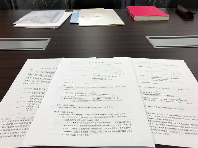 事故の状況や自分の事情を話し、委任契約書を交わして1時間ほどで契約終了。